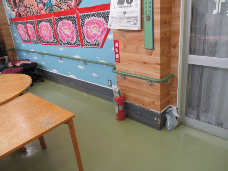 寮母室前の消火器です。職員がいる確率が一番大きいので、万が一の時はここの消火器を使いそうです。