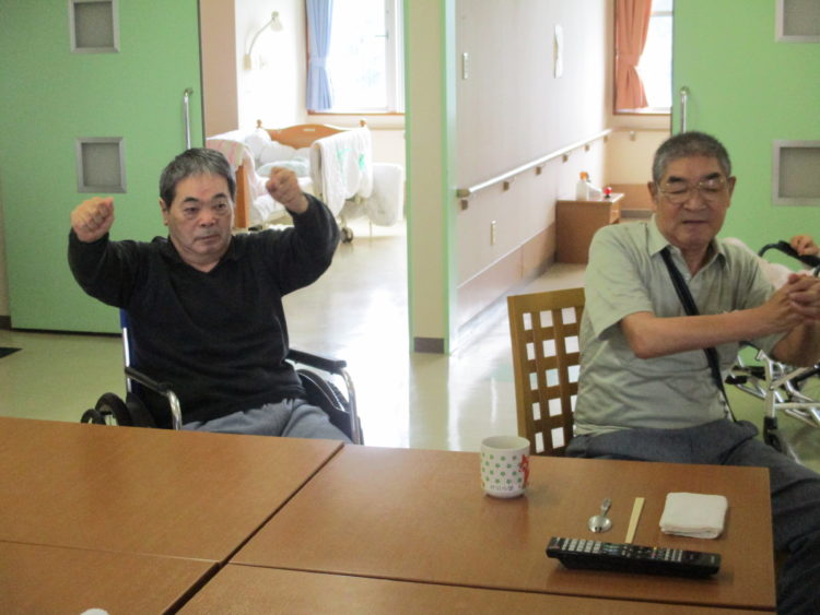 そんな中、暑さにも負けずお客様は機能訓練の体操に励んでおりました。