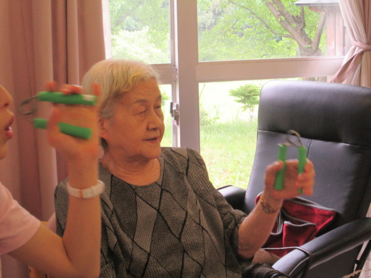 グル―プでの筋力運動では、握力を鍛えていました。どの利用者様も、熱心に取り組んでいらっしゃいました。