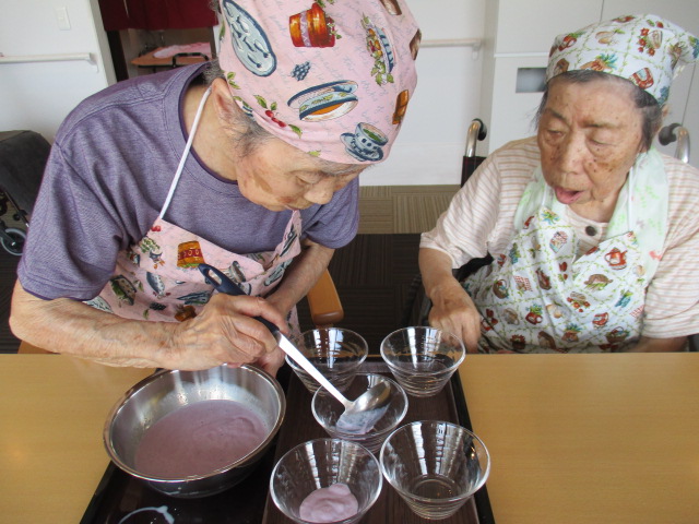 暑い中ですので牛乳を使った簡単なデザート作りをしました。