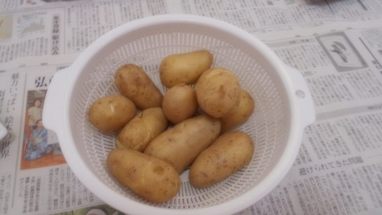今日は、収穫したじゃがいもを塩ゆでして、いただきました。