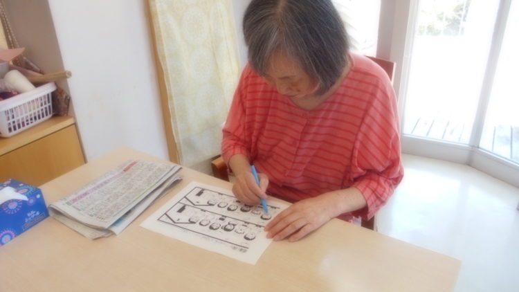今日のレクの時間は、「脳トレにチャレンジ!」ということで、間違い探しを行ないました。
