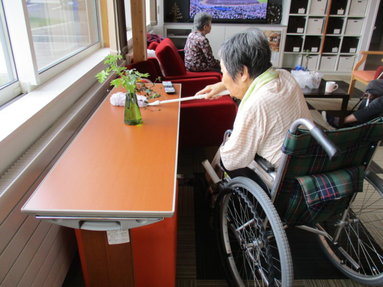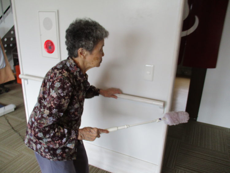 S様もN様と交代でテーブルの埃取りを行いました。