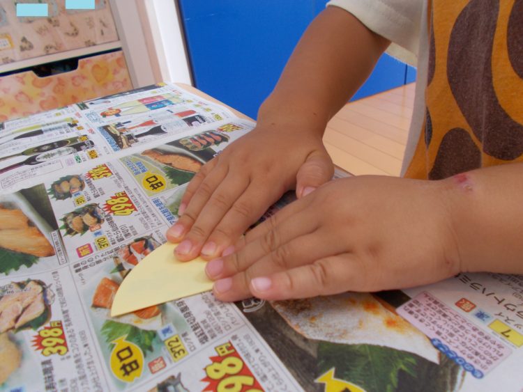 今日のうさぎ組さんは、絵の具で製作をしました。