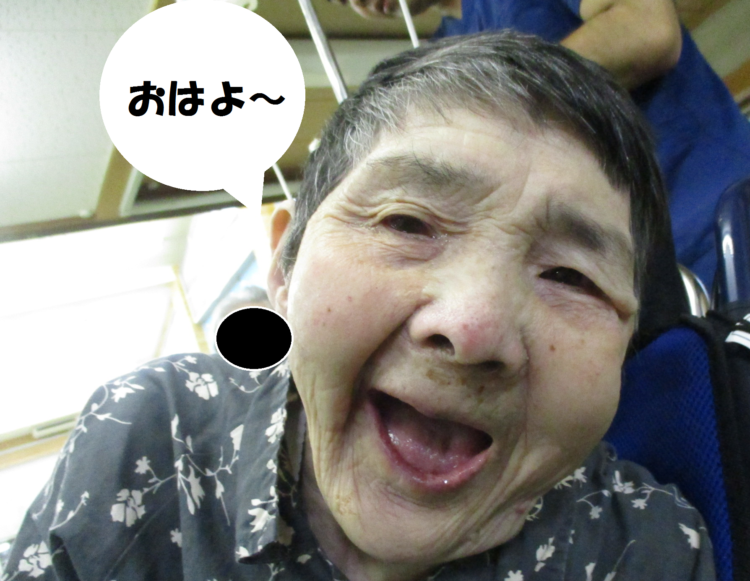 お部屋でお休みいただく前の様子です。笑顔がいつも素敵ですね!と声がけ行うと、ちょっぴり照れくさそうな表情でした(///^///)