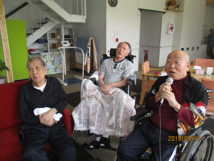 職員も一曲歌い、皆様から拍手を頂きました^0^