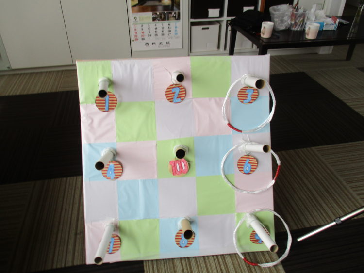 本日は、皆様と一緒に作った、手作り輪投げを行いました。