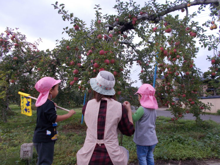 今日はみなみ幼稚園の方までりんご畑の横を通って行くルートです。