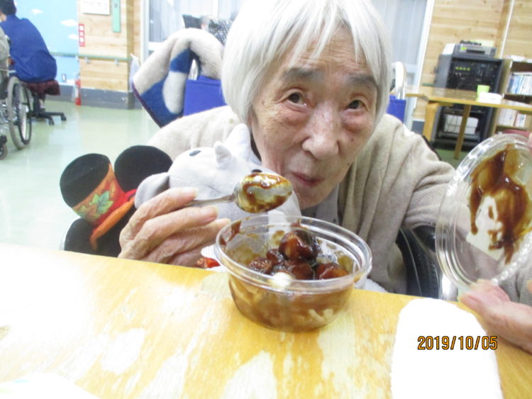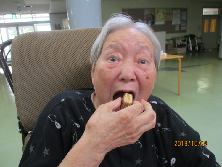 M様はご家族様に持ってきていただいたお団子をパクパク!「とっても美味しい!」と嬉しそうに話され、摂取後はゆったりとした時間を過ごされておりました!