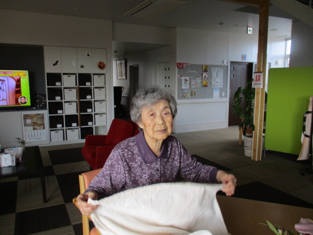 N様に「洗濯物たくさんあるけど畳んでくれますか」と言うと「うんいいよ」と言ってくれました。綺麗に黙々と行っておりました。N様いつもありがとうございます。