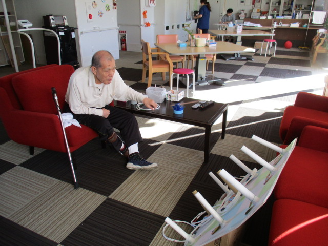 ひと休み頂いた後の余暇は座って輪投げをしました。