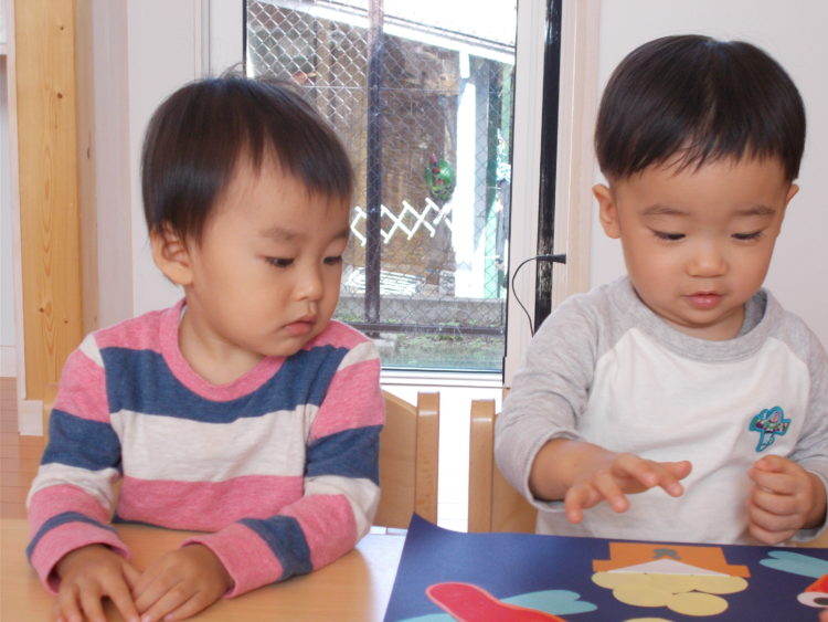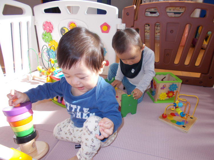 順番待ちの僕たちは、木製おもちゃに夢中です♪