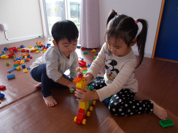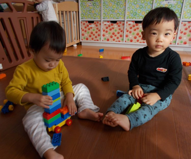1番のりで登園してきたOちゃんとSくんが選んだブロックはレゴブロック!