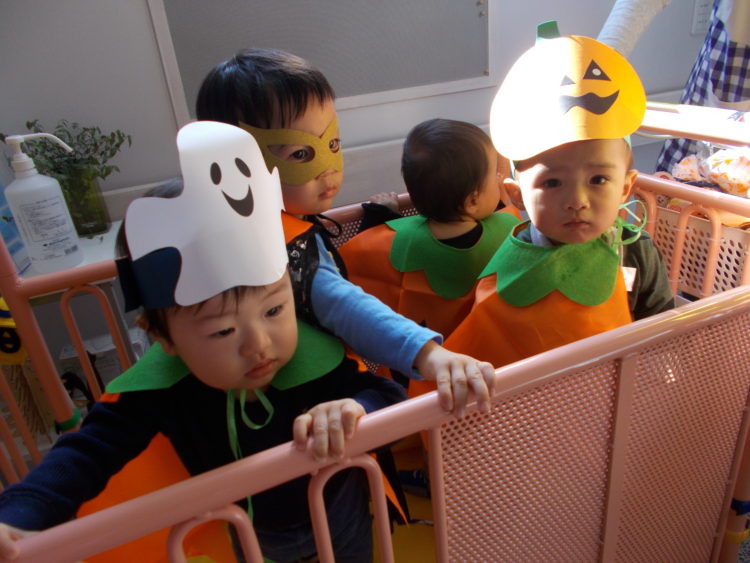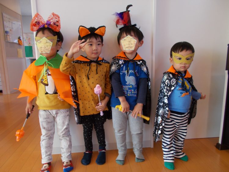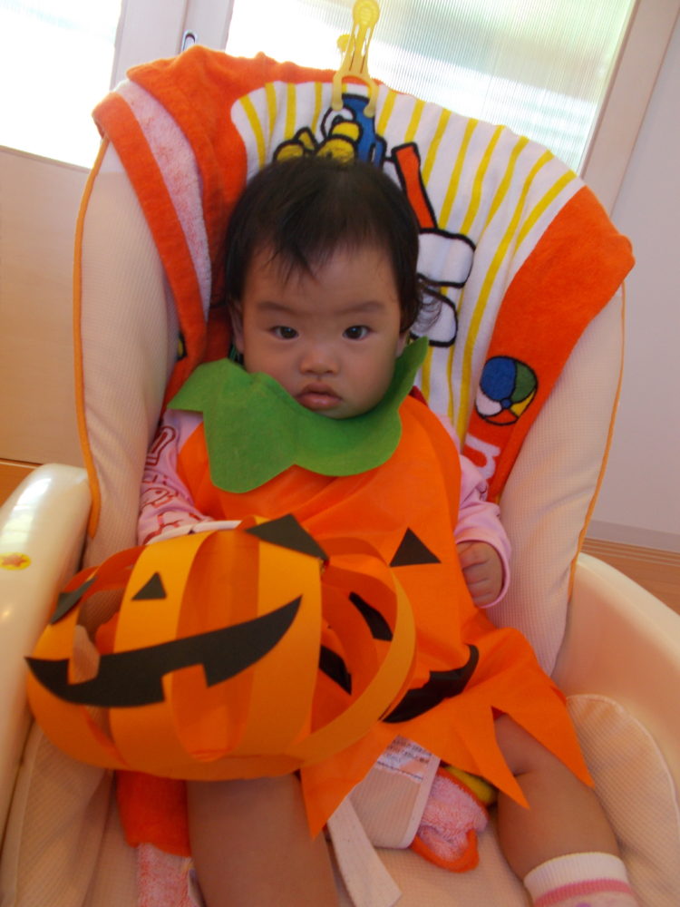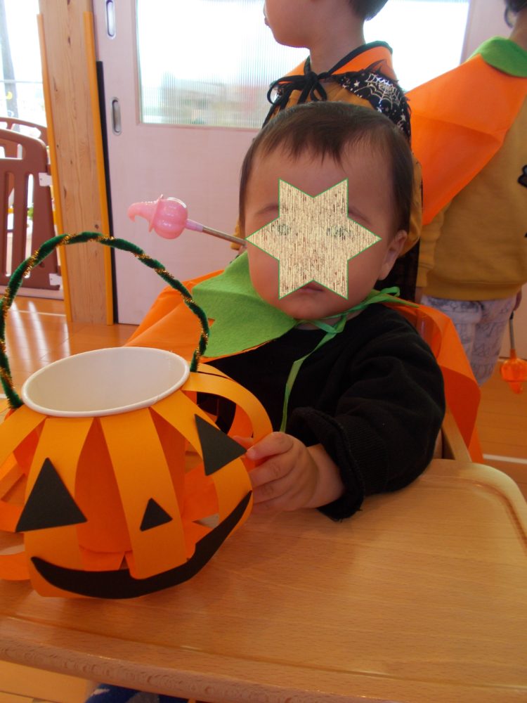 お手製のかぼちゃのバックの中に、た~くさんお菓子が詰まっており