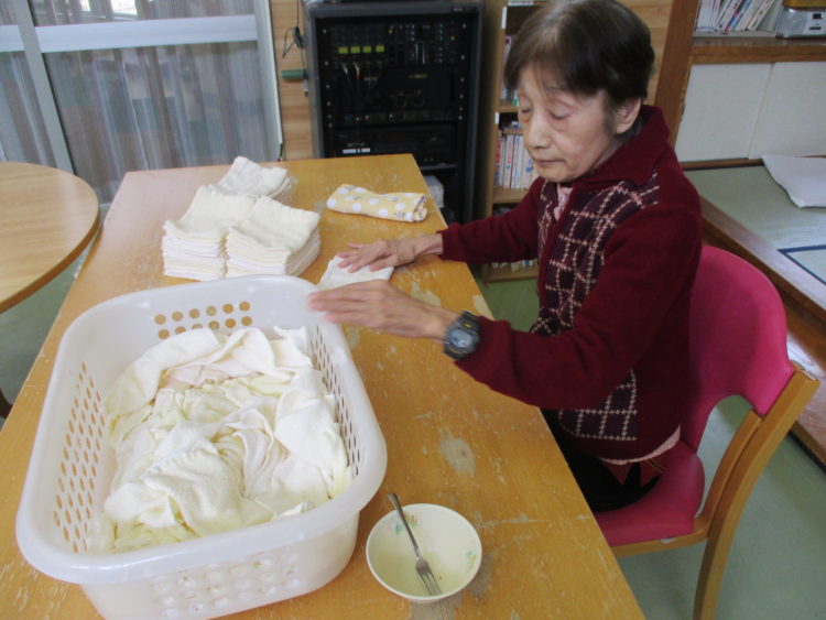 S様もいつの間にか食べ終わっていて、タオルを畳むお手伝いを再開しておりました。