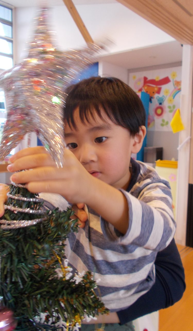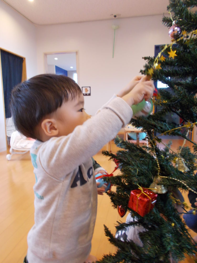 ということで、今日はみんなでクリスマスツリーを飾りました。