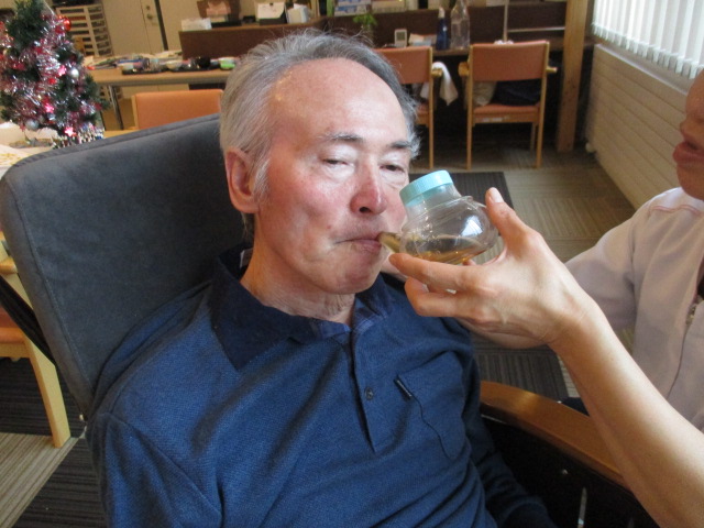 S様は入浴後、テレビを見ながらお茶を飲んでおりました。