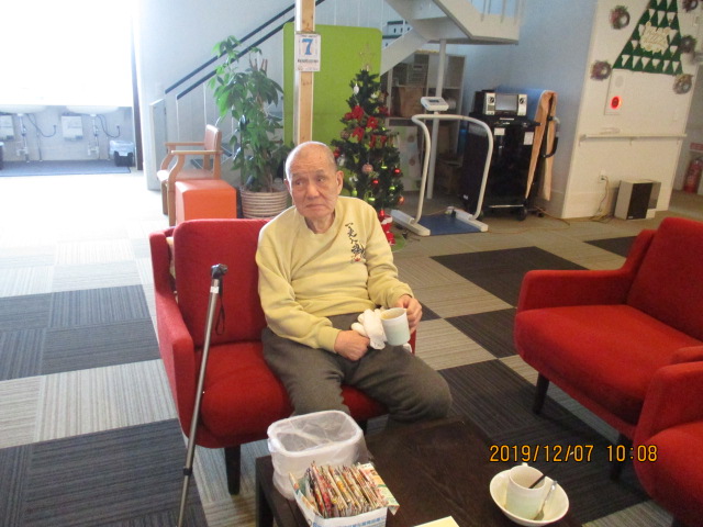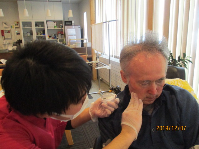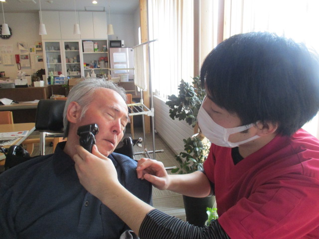 S様は、本日入浴が無いのでホールで髭剃りを行いました。