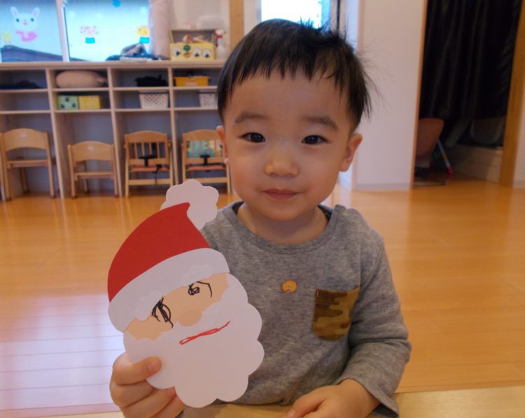 りす組はクリスマス製作で、とってもかわいいサンタさんの顔を作りましたよ(*´ェ`*)
