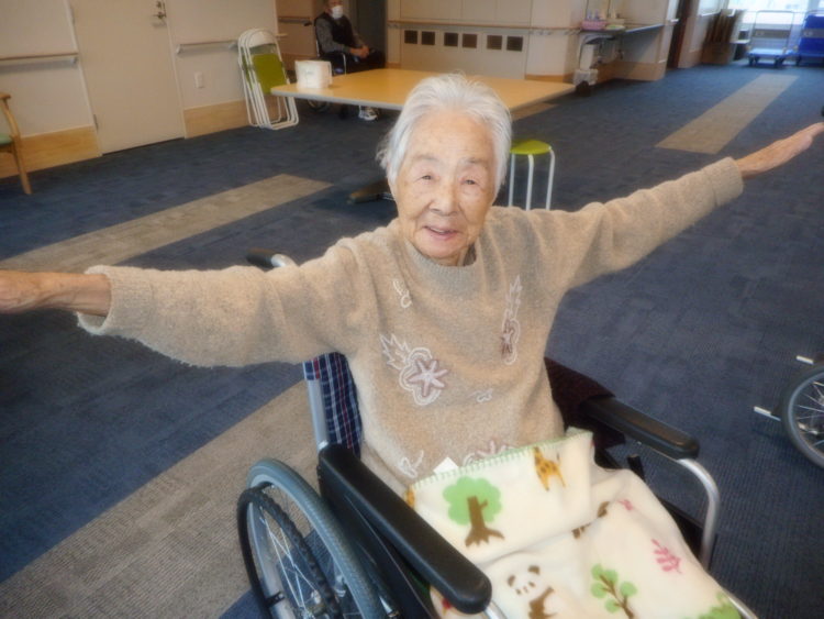 本日、ショートステイ山崎では午後にみんなで体操をしました。