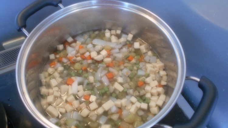 人参、大根、ごぼう、ふき、わらび、こんにゃく、高野豆腐とすべて、さいの目切りにしました。頑張りましたね!