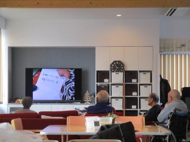 入浴後のホールには笑い声が響いていました。テレビで放送されているのは桃太郎侍です。お茶目にシーンに皆様大笑いです。