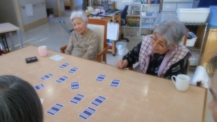 今日のレクは、久しぶりにトランプをしました。記憶力アップの脳トレになる神経衰弱です。