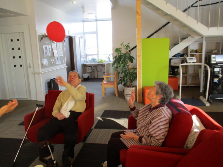 本日は、風船バレーを行いました。