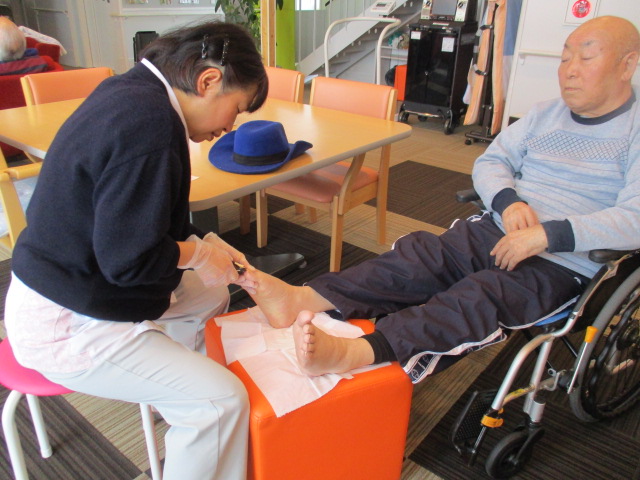 水分補給された後、K様の足の爪切りを行いました。