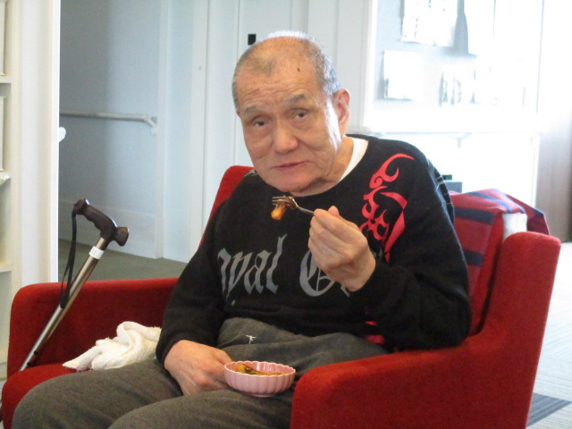 本日はお茶会の時間にチュロスを提供しました。「チュロスってなんだば?」というお声は聞かれましたが、甘くて美味しいお菓子ですよ~と説明すると「んだのが~」と皆様笑顔。