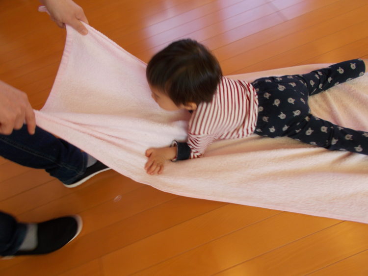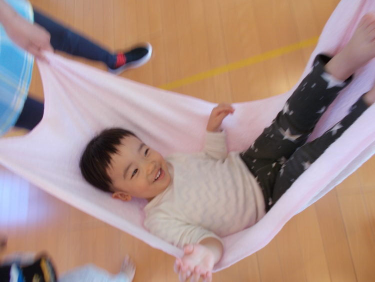 バスタオルに乗ってゆらゆら揺らしてもらったり・・・