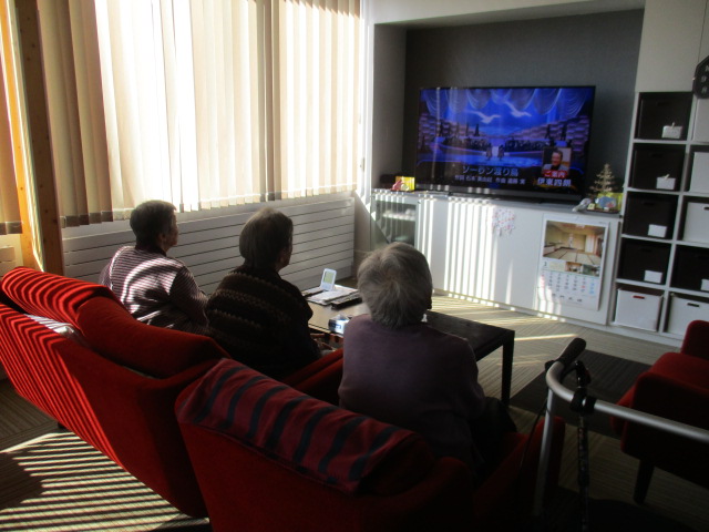 入浴後、コーヒーやお茶を飲みながら歌番組を見て過ごされました。知っている歌を皆様口ずさんでおりました。