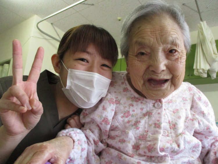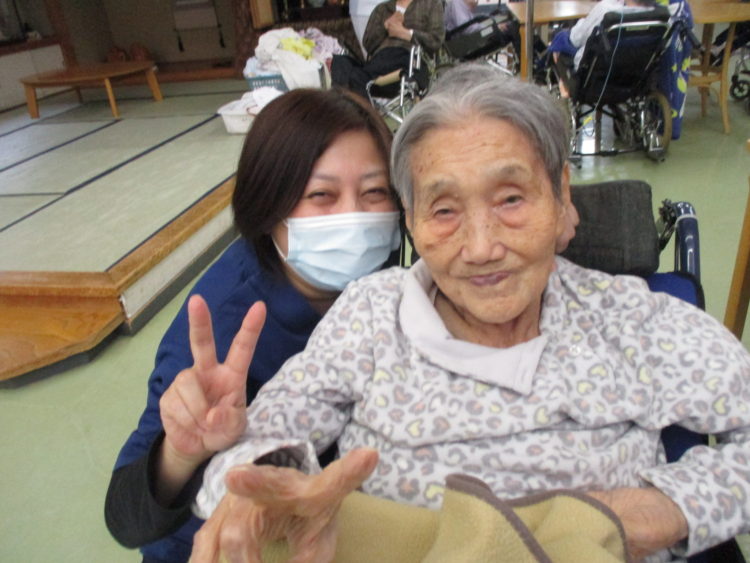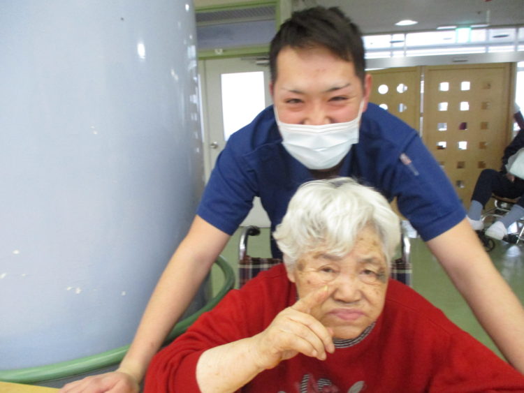 2月より特養の仲間になりました、K介護員とI様です♪「優しい男だな~」とI様はK介護員をお褒めになられていました。
