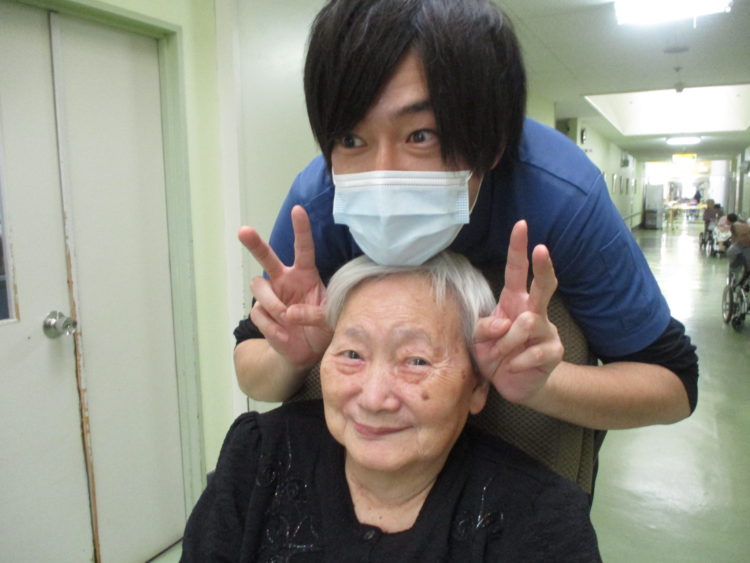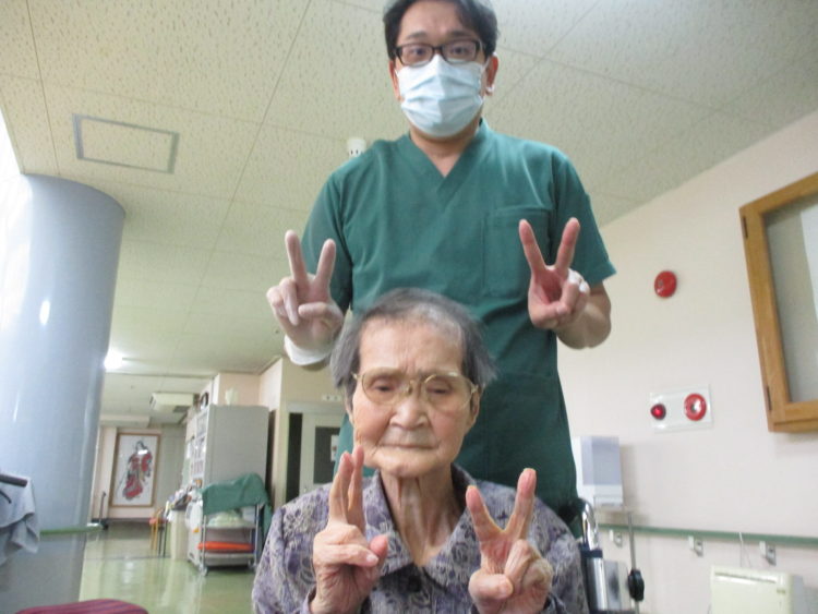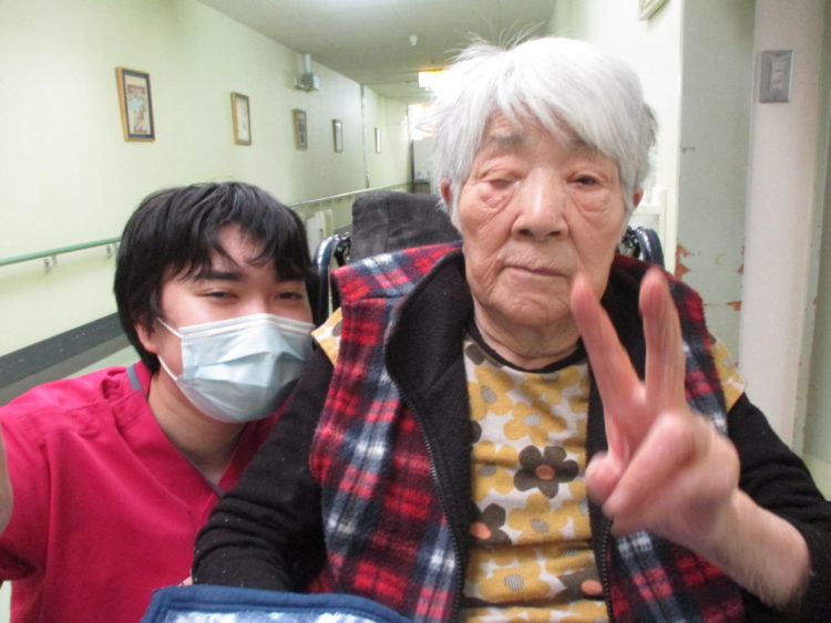 A介護士とK様は揃ってダブルピース!!K様は撮れ具合の確認も忘れません!!