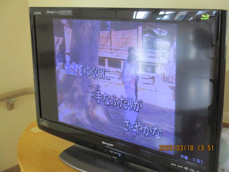 そんな中で利用者がコーヒーを飲みながら何かを見ていました。何を見てると思ったら、テレビのカラオケを聴いて歌っていました。他利用者も同じように歌ってほのぼのとしていて、こういう日も良いなと思いました。