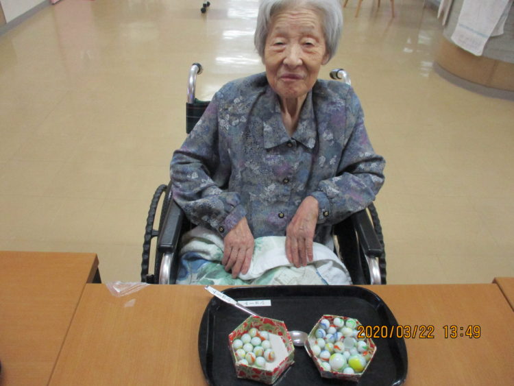 本日は余暇活動としてこちらのビー玉をスプーンを使い30秒間で何個、隣に移せるか!というちょっとしたゲームをしてみました!