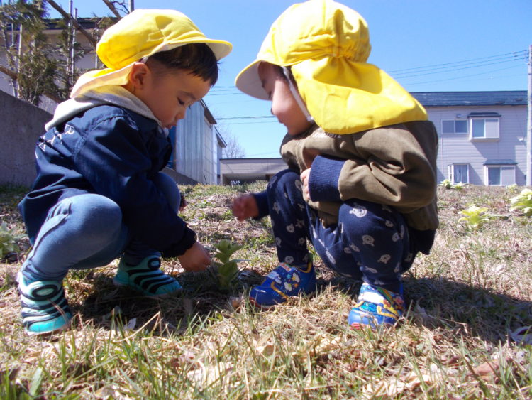 ショートステイの裏庭で”ふきのとう”を見つけました。