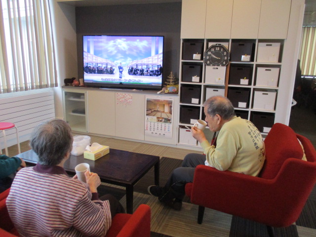 体操の後は、水分補給しながら歌番組を見て過ごされておりました。