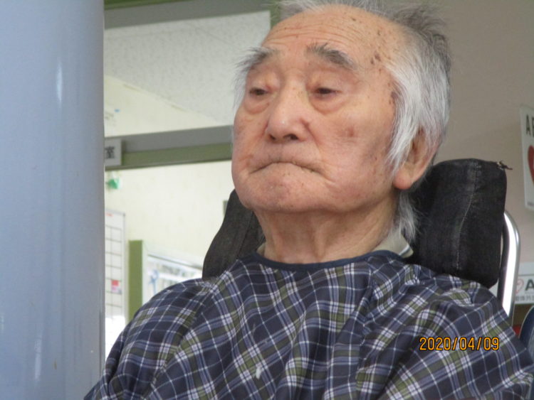 こちらの男性のI様はご自分で食事を召し上がられますが、少々食べこぼしがあるため袖つきの大きいエプロンをされております。これからもできるだけご自分の力で食事を召し上がって頂けるように支援して参りたいと思います。