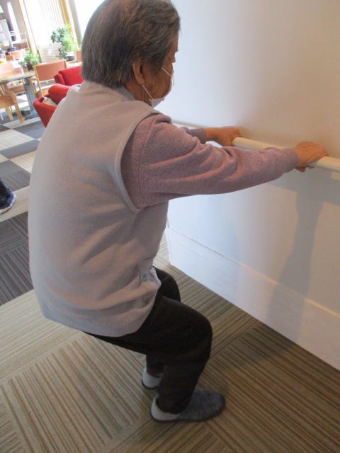 手すりを使用し、下肢運動を行いました。