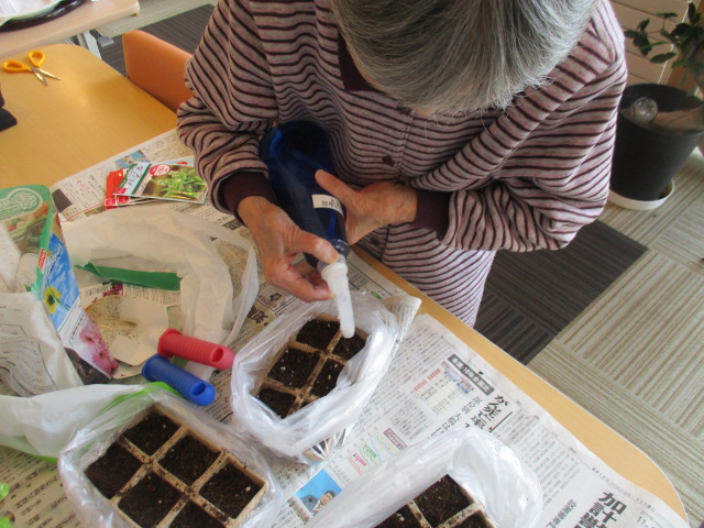 本日は、種まきを行いました。