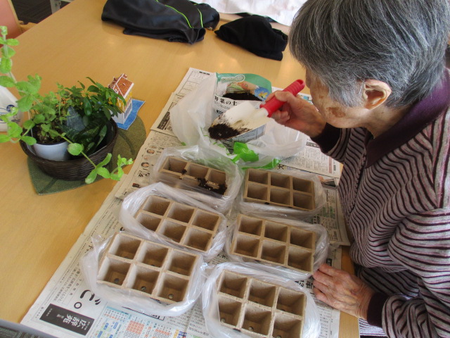 土を入れて、種を入れ・・