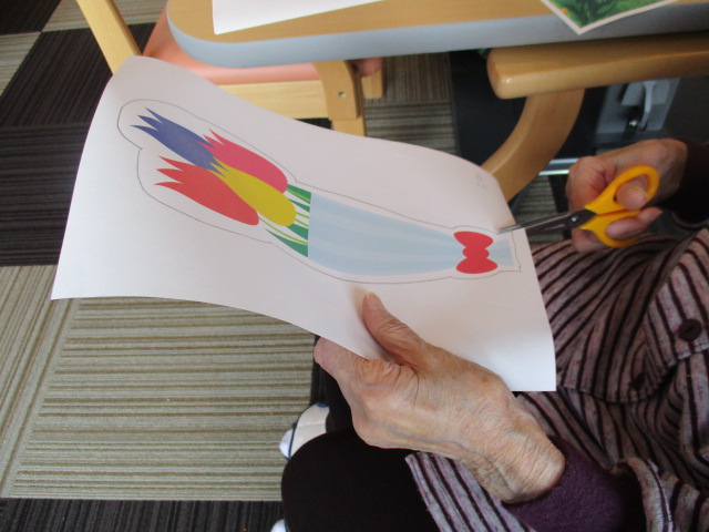 本日は施設内を春らしいデザインにしようと考え、N様と一緒に準備を行いました。今回はチューリップを選択です。