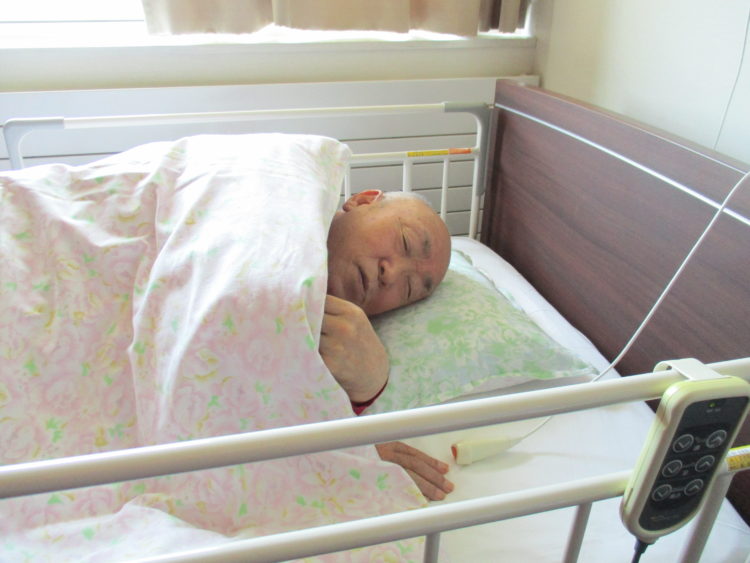 入浴後に「横になりたい」と話しており、ベッドで休んでいるK様です。