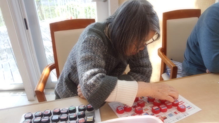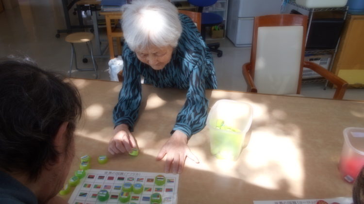 本日も皆さま大好きな脳トレ、国旗合わせをやっていらっしゃるところです。