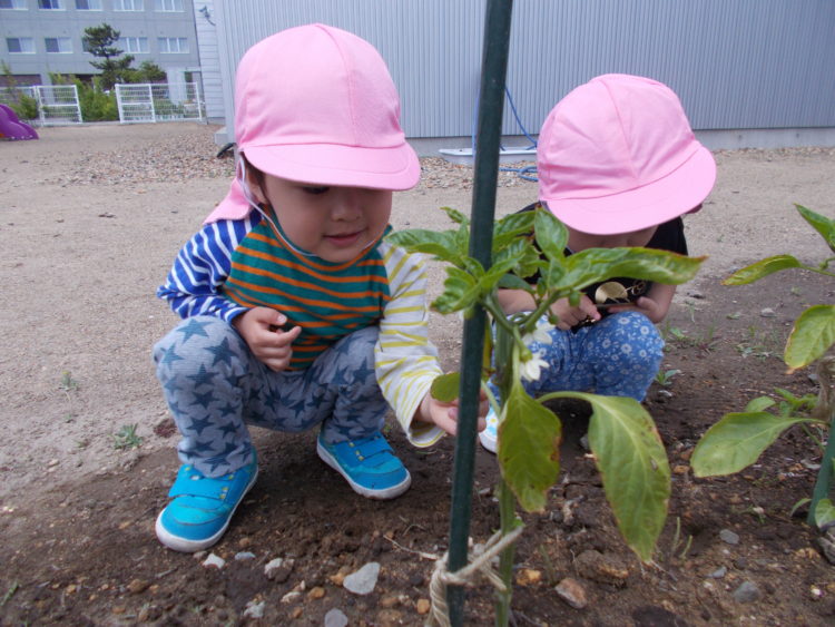 5月中旬に植えたきゅうりやトマト、ピーマン等の
