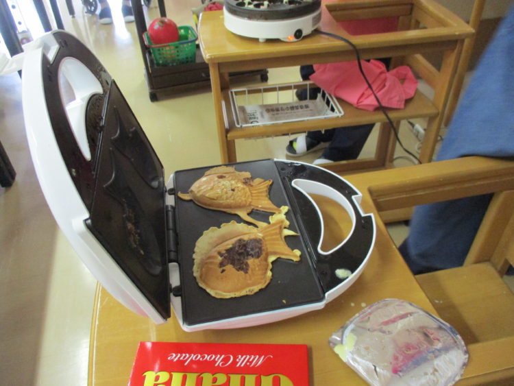 本日はたこ焼き&たい焼きパーティーを開催しました。皆さんで分けて盛り上がって食べていました。