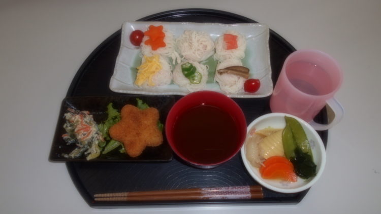 ベルフラワーのお客様方も、昼食は豪華な行事食をいただきました。