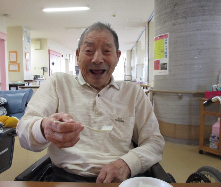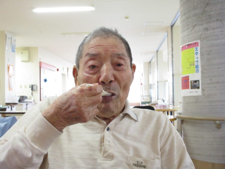 K様、久しぶりのかき氷をおそるおそる ぱくり…