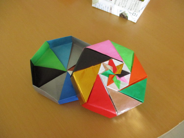 折り紙を一枚一枚折り、組み合わせて作った化粧箱。